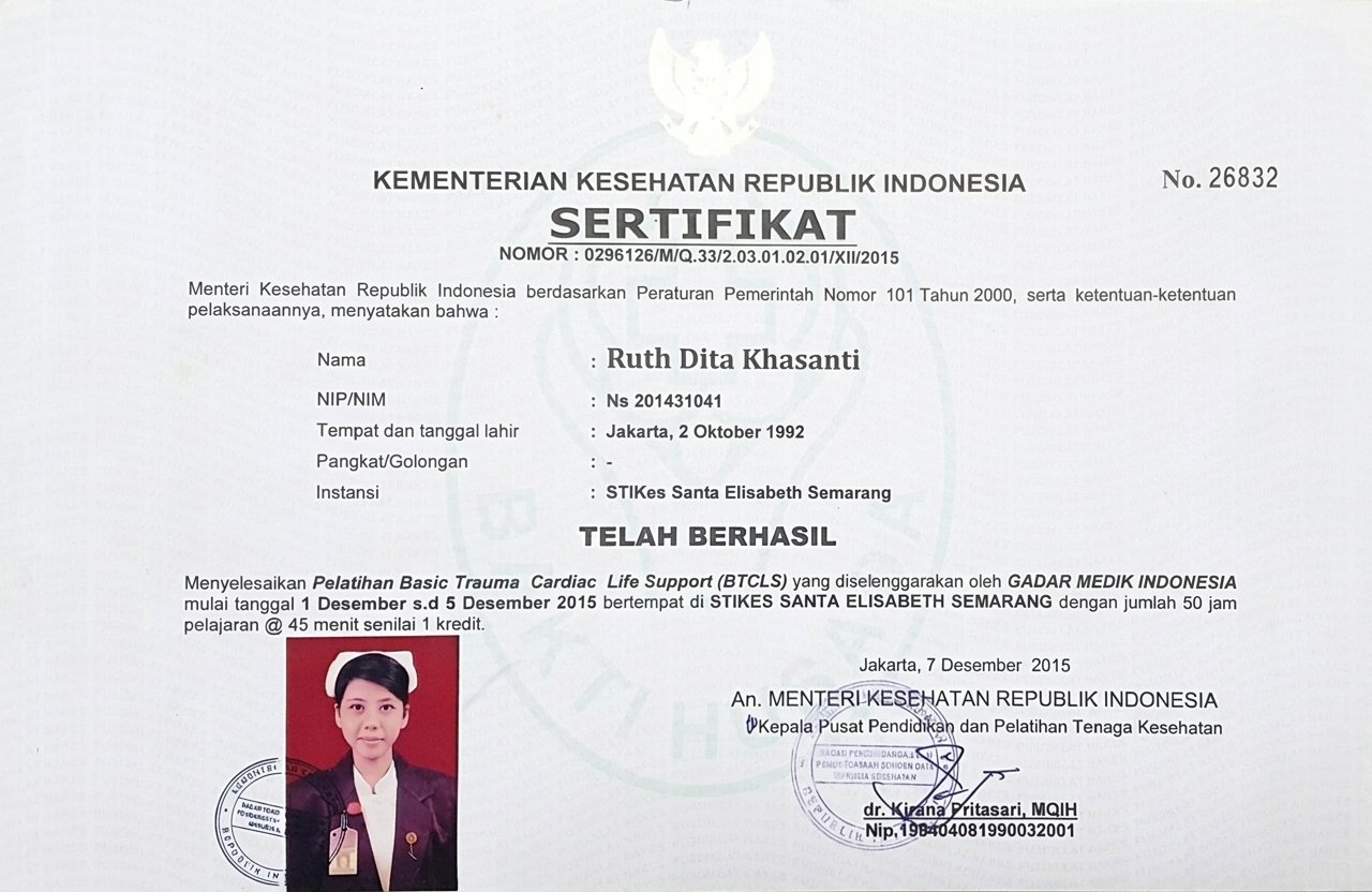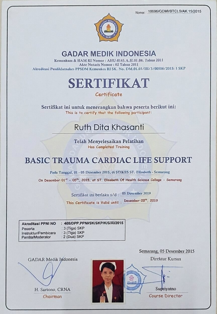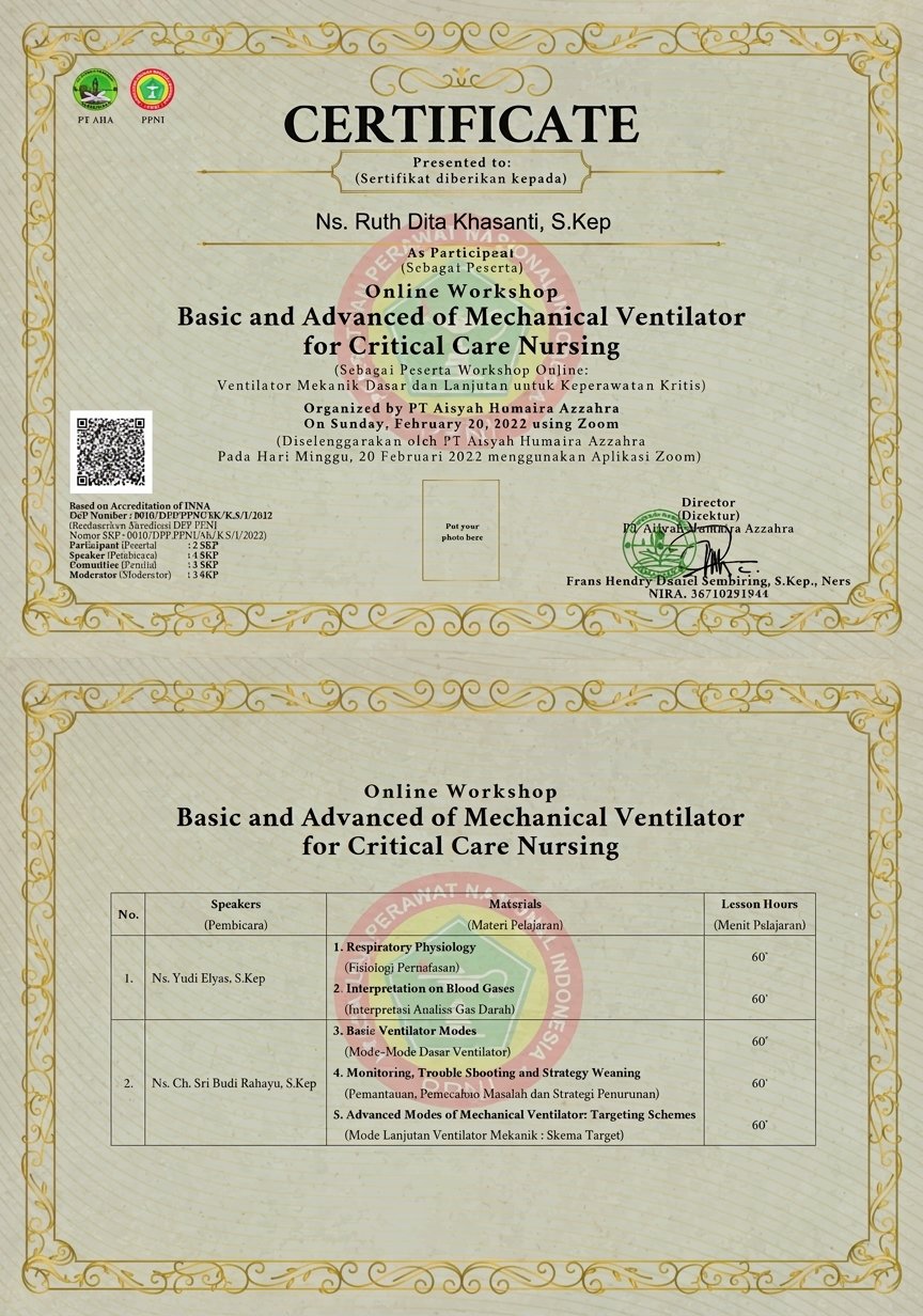 Sertifikat Basic and Advanced of Mechanical Ventilator